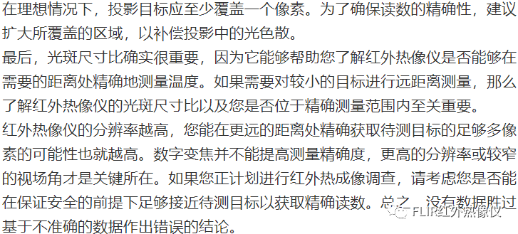 光斑尺寸比理論值僅能反映單一像素內非常小范圍的溫度,但是單一像素測量值可能不準確的原因有很多: