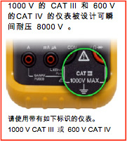 如果你的萬用表或導向柱沒有適當的等級標識,請不要使用其測量。如果你必須要進行測量工作,請購買高一等級儀表以符合測量環境。使用陳舊的儀表(早于1996年生產)或新的儀表,但沒有適當的電壓類別等級,會使你和你的人員處于危險之中。