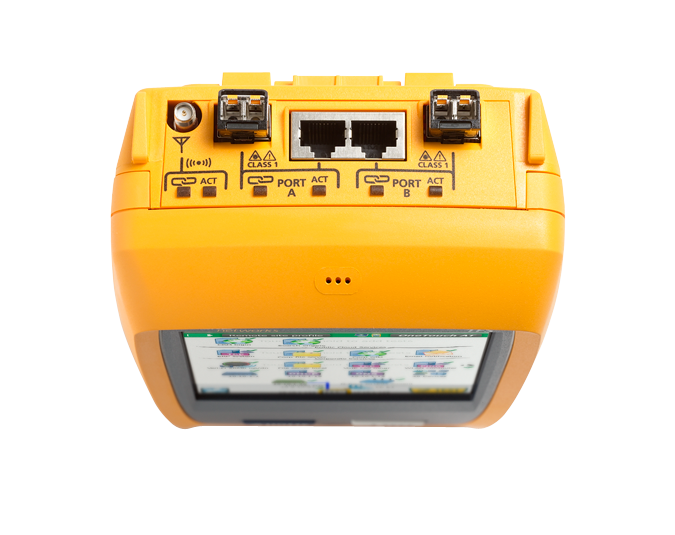手持式 OneTouch AT G2 網絡助手提供了多種故障排除方案。測試儀采用雙重銅纜和光纖測試端口,以方便排除 10/100/1000 Mbps 雙絞線和 100/1000 Mbps 光纖以太網網絡的故障。無需鏡像端口或分路器,雙端口簡化了在線數據包捕獲和 VoIP 監(jiān)控。為了進行 Wi-Fi 網絡故障排除,OneTouch AT G2 測試儀集成了 802.11ac 雙波段 Wi-Fi 無線電和 3x3 天線。測試儀連接至有線和 Wi-Fi 網絡時,在單一頁面上并列顯示測試結果,有助于問題域隔離。