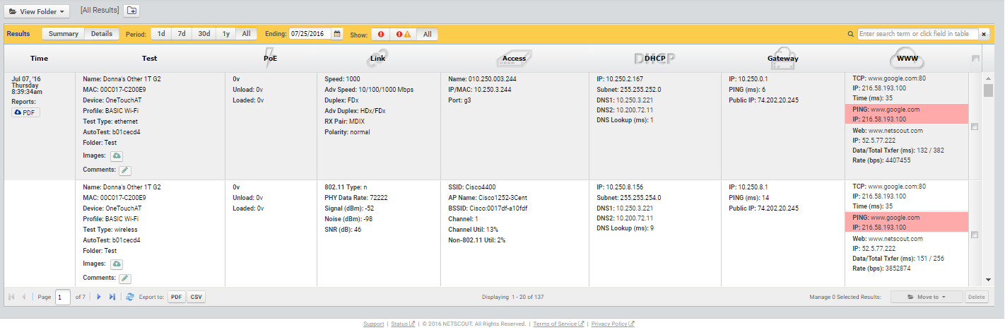一旦 OneTouch AT 連接至 Link-Live 云服務,有線和無線網絡連接測試結果和自動測試結果都可以自動上傳至顯示板,方便項目管理和報告。您可在任何能夠上網且有瀏覽器的地方使用任何設備隨時查看云上托管的服務。它對于需要即時查看測試結果的遠程團隊的管理者尤其有用。此外,利用 AirCheck G2、LinkSprinter 或 LinkRunner 的團隊有一個指示板系統(tǒng),用來管理網絡連接測試的結果,因為所有這些手持網絡工具都連接到 Link-Live 云服務。