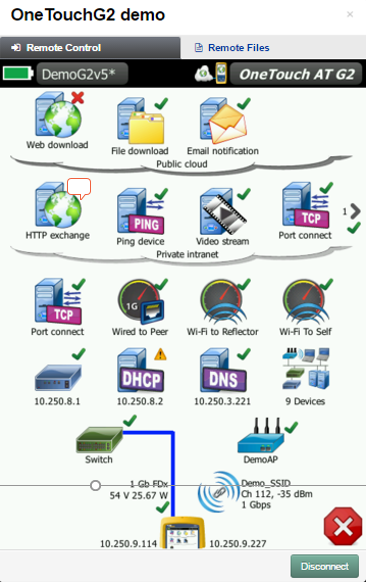使用內置 RJ-45 管理端口或可選 USB Wi-Fi 適配器以遠程控制 OneTouch AT 并遠程訪問已保存的文件。任何直接在 OneTouch AT 上使用觸摸屏執(zhí)行的操作均可使用電腦、筆記本、平板電腦或智能手機遠程實現。減少傳送到報告問題的客戶位置所花費的時間、費用以及其他不便。Webcam 支持可實時、遠程查看測試儀周圍的環(huán)境。 通過云服務遠程控制裝置還可以遍歷 NAT 設備,這在辦公室外進行故障診斷時非常有用。