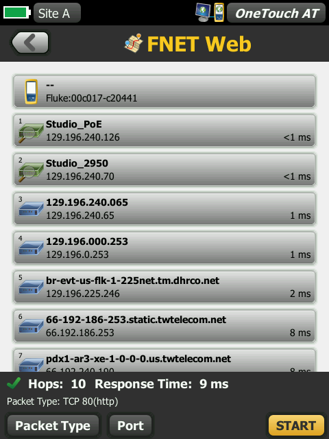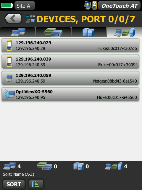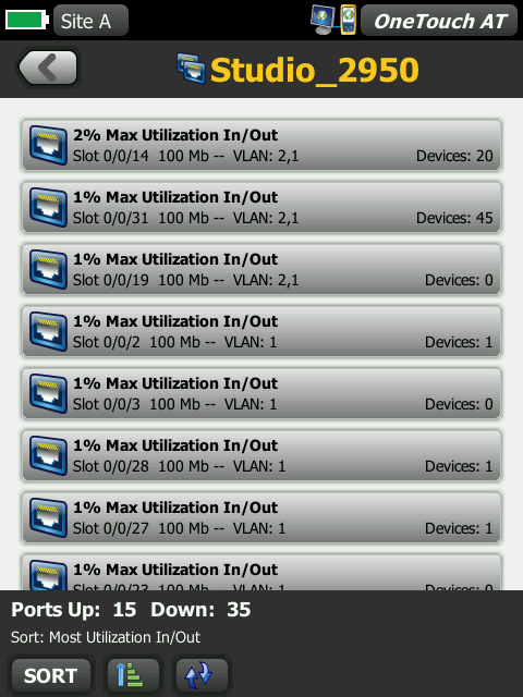 自動發(fā)現銅線和光纖連接設備以及關鍵設備屬性。從十四種不同排序中選擇,獲取有線網絡的不同視圖。例如,根據 IPv4 或 IPv6 地址進行排序可識別已使用的和可用的地址。或者按照交換機名稱/插槽/端口進行排序,以了解網絡設備上的連接位置。按照發(fā)現的問題進行排序,快速找出潛在的問題。其他發(fā)現輔助分析工具有助于解決問題及創(chuàng)建配置文件。例如,多端口統(tǒng)計信息工具提供交換機、路由器和接入點端口統(tǒng)計數據,包括速度、雙工、插槽、端口、VLAN、主機計數、使用率、丟棄率和錯誤率。Devices on Port 工具可監(jiān)視連接到各個交換機端口的設備。路徑分析工具會在 OneTouch AT 和目標設備之間提供一個層 2 和 3 跟蹤路由,包括每次跳躍的時間和 SNMP 交換機和路由端口統(tǒng)計數據。