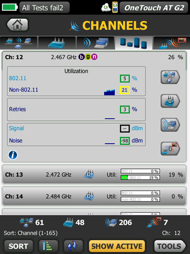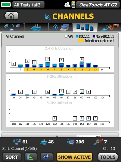 Wi-Fi 分析網絡、接入點、客戶端、信道、工具(名稱、授權、連接、定位、捕獲)、分類、顯示有效