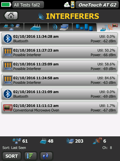 自動發(fā)現 Wi-Fi 設備和關鍵設備屬性,包括 802.11ac 新接入點和客戶端。從二十個上下文相關排序中選擇,獲取無線網絡的不同視圖。例如,根據信號強度排序可解決 Wi-Fi 覆蓋范圍問題。根據 MAC 制造商排序可以發(fā)現 Wi-Fi 設備的類型,以及其相對于 SSID、AP 和信道的連接方式。根據信道排序可以確認信道間距和使用問題。根據授權狀態(tài)排序可以找出潛在的安全違規(guī)行為。其他發(fā)現輔助分析工具有助于解決問題及安全實施。如果通過有線分析還發(fā)現了 Wi-Fi 設備,跨鏈路功能可幫助實現一鍵在有線和 Wi-Fi 分析視圖間進行切換。